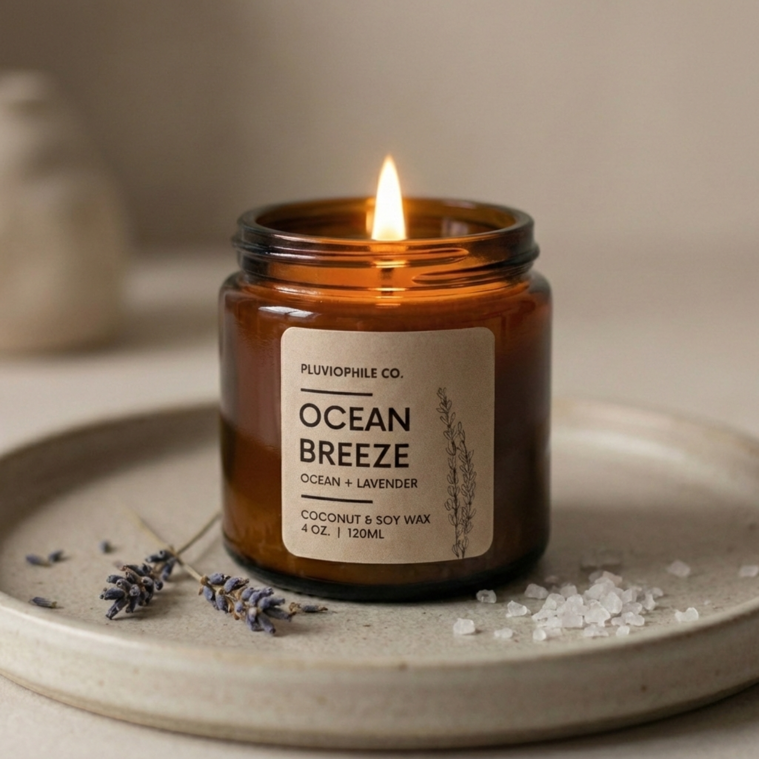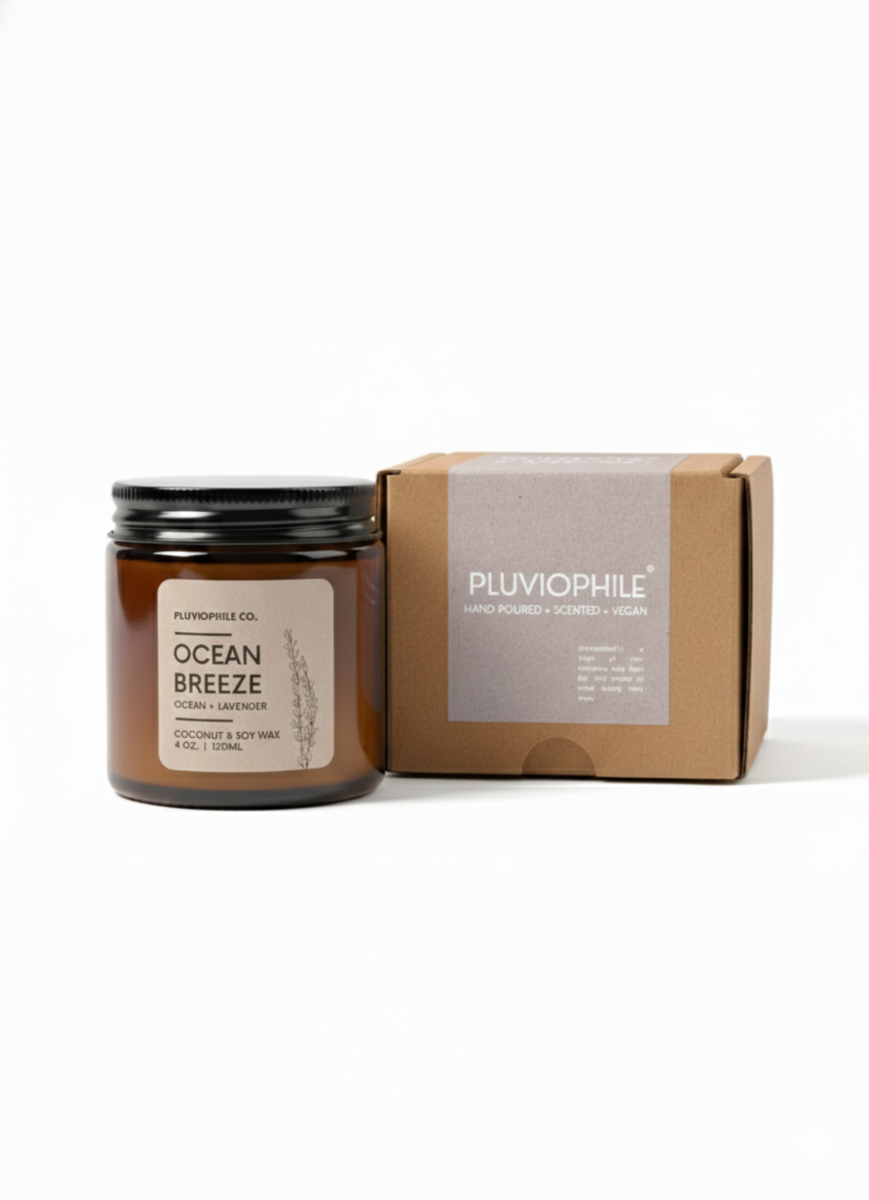 Ocean Breeze – Pluviophile Vegan Hand‑Poured Candle (Coconut & Soy Wax, 120 g)